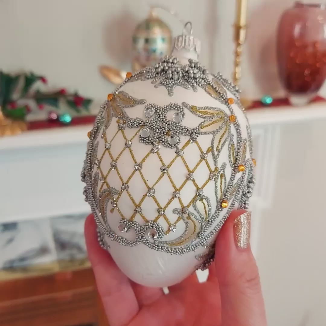 EMBELLISHED WHITE & GOLD FABERGÉ EGG