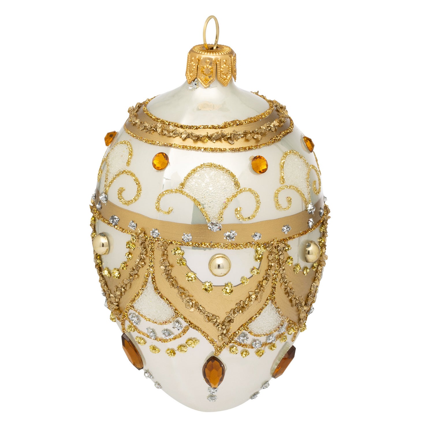 Introducing a new size! Miss Christmas Small Fabergé ornaments stand 3.9 inches tall, slightly more petite than our classic 5-inch Fabergés. Mix and match to create a perfect set, by combining the two sizes!