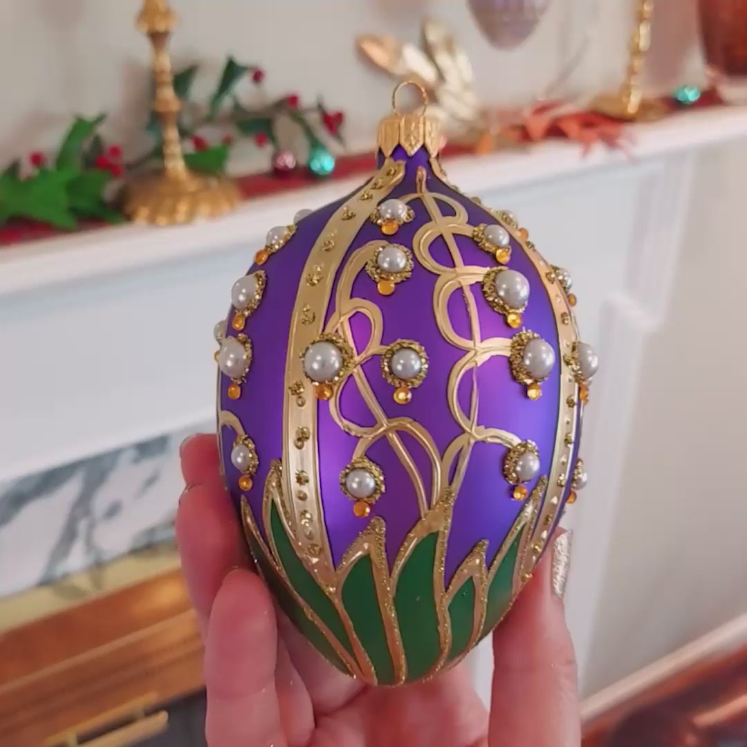 PURPLE FABERGÉ EGG WITH LILY OF THE VALLEY PATTERN