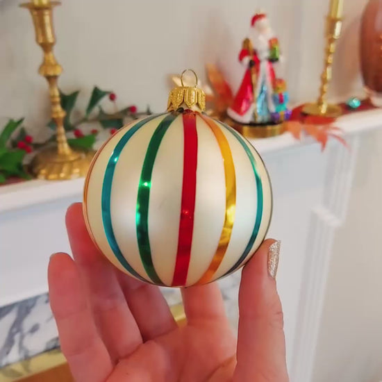 New design in 2025! An elegant, classic style. Each 3.1-inch bauble is painted and decorated by hand, in design that looks like glowing dewdrops on the ivory bauble.
